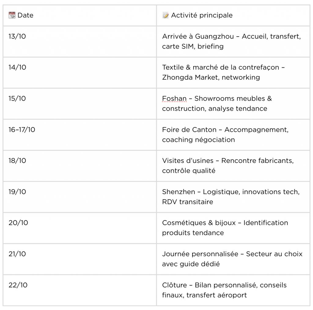 Avec Sino Plug, vivez un séjour 100 % terrain pendant la Foire de Canton, entre visites de marchés, rencontres fournisseurs et coaching stratégique.